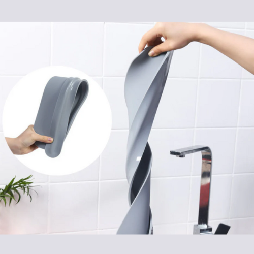 Soft and bendable silicone easily fits around most sinks and faucets.